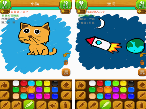 相对于只能画画的游戏,给大家介绍的这款,它是以你画我猜为主的,所以不管是你想要满足自己在画画方面的需求,还是与好朋友共同的猜词,这都是满足需求的。在画画的时候,给大家提供了丰富的画板,你可自由的选择,如果画画的内容,并不是自己喜欢或者是画错了,也不需要担心,有很多的画笔,同时还能利用涂料的方式完成涂色。
