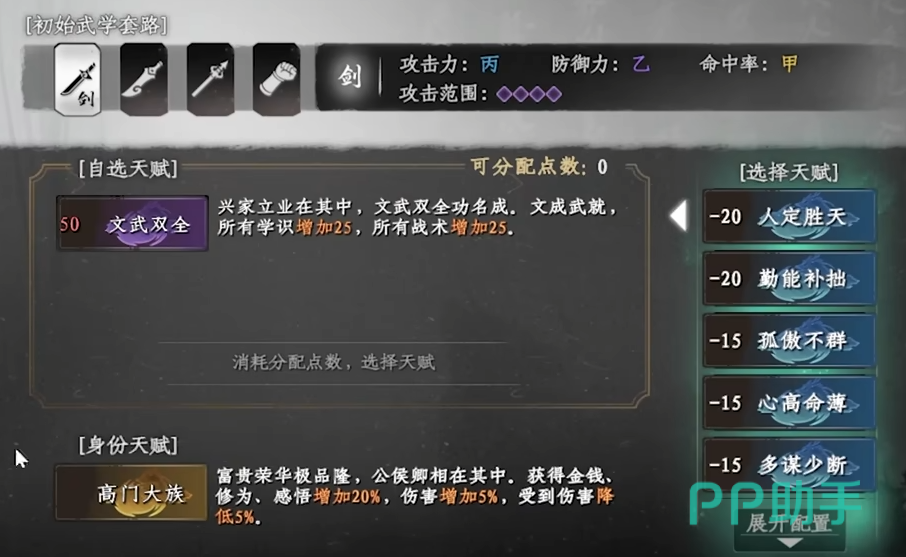 游戏开局阶段需要进行角色创建,这是影响后续养成路线的重要环节。首先需选择角色出身背景,不同的出身不仅带来差异化的初始剧情,还会影响早期可获得的奇遇与资源。因此建议玩家根据计划使用的武器类型和功法流派来决定出身,以便更好地衔接前期发展。
