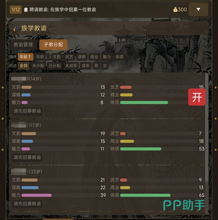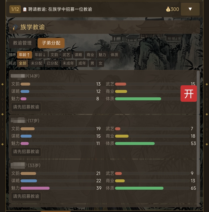 家族成员成长体系高度结构化:每位角色均可进入书院研习经史、赴武场锤炼技艺,能力提升直接受对应建筑等级影响;升级家族核心建筑,将同步强化其对成员的属性加成效率与技能解锁上限。玩家可通过成员档案实时查看天赋倾向、专精领域及潜在成长方向,据此为其规划仕途、军职、商道或隐逸路线,实现人尽其才、才尽其用,持续反哺家族整体实力跃迁。
