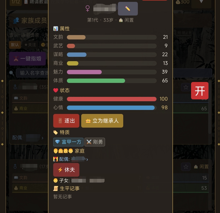 《百世流芳》虽以文字叙事为载体,却构建出深度策略导向的家族模拟世界。游戏摒弃轻量化设计,采用高自由度、强逻辑性的经营系统,对玩家所制定的每一条家族发展路径——无论是科举兴文、武备立威,还是联姻结盟、朝堂周旋——均进行动态推演与结果反馈,真实还原百年世家沉浮脉络。