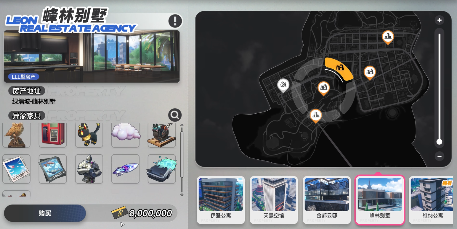 资金达标后返回原房产商处,再次对话对应NPC,确认意向房源编号、面积、楼层及最终成交价。核验无误后执行方斯支付,交易即时生效,产权自动登记至玩家名下。交割完成后,房屋内部将生成专属管家角色“Mr.尤加利”,负责日常维护、家具布置指令响应及后续服务对接。