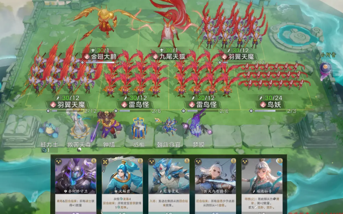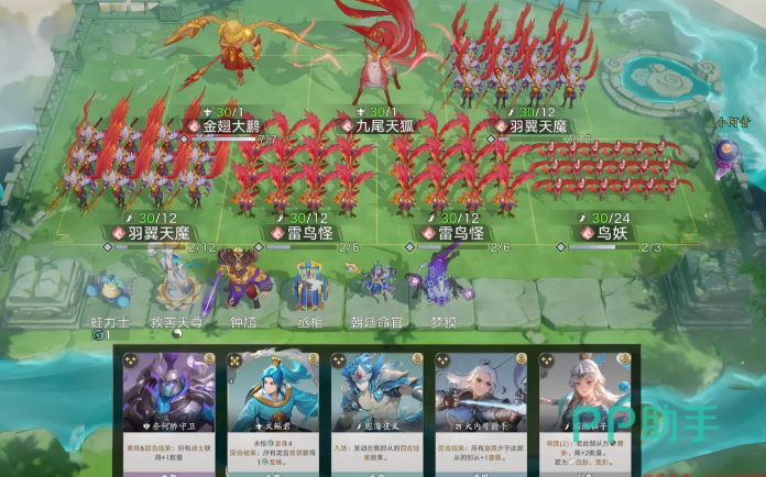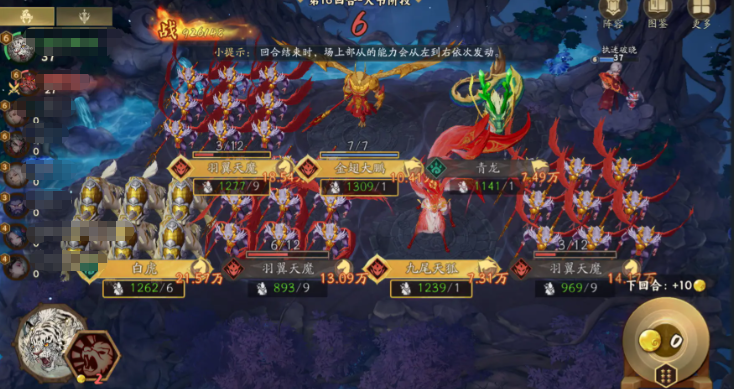 幽都体系围绕瘴气与小鬼双资源运转:瘴气提供全队持续性属性增益(如攻击力、抗性浮动加成),小鬼则需通过特定幽都单位在战斗中召唤积累,达阈值后可释放终极单位扭转战局;仙庭机制独树一帜,依托卦象系统实现动态适配——黑挂强化防御与控制,白挂侧重输出与机动,玩家须实时研判敌方阵容构成,切换卦象以激活对应幻神的攻防特性,对策略预判能力要求较高。