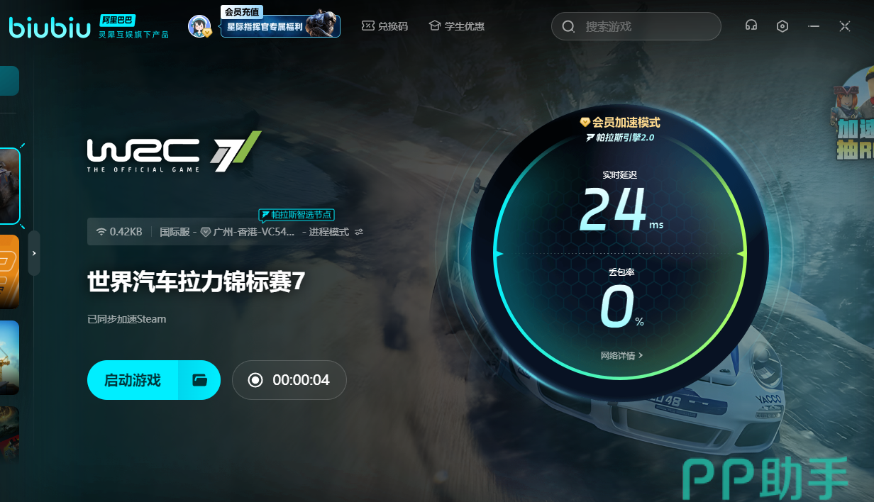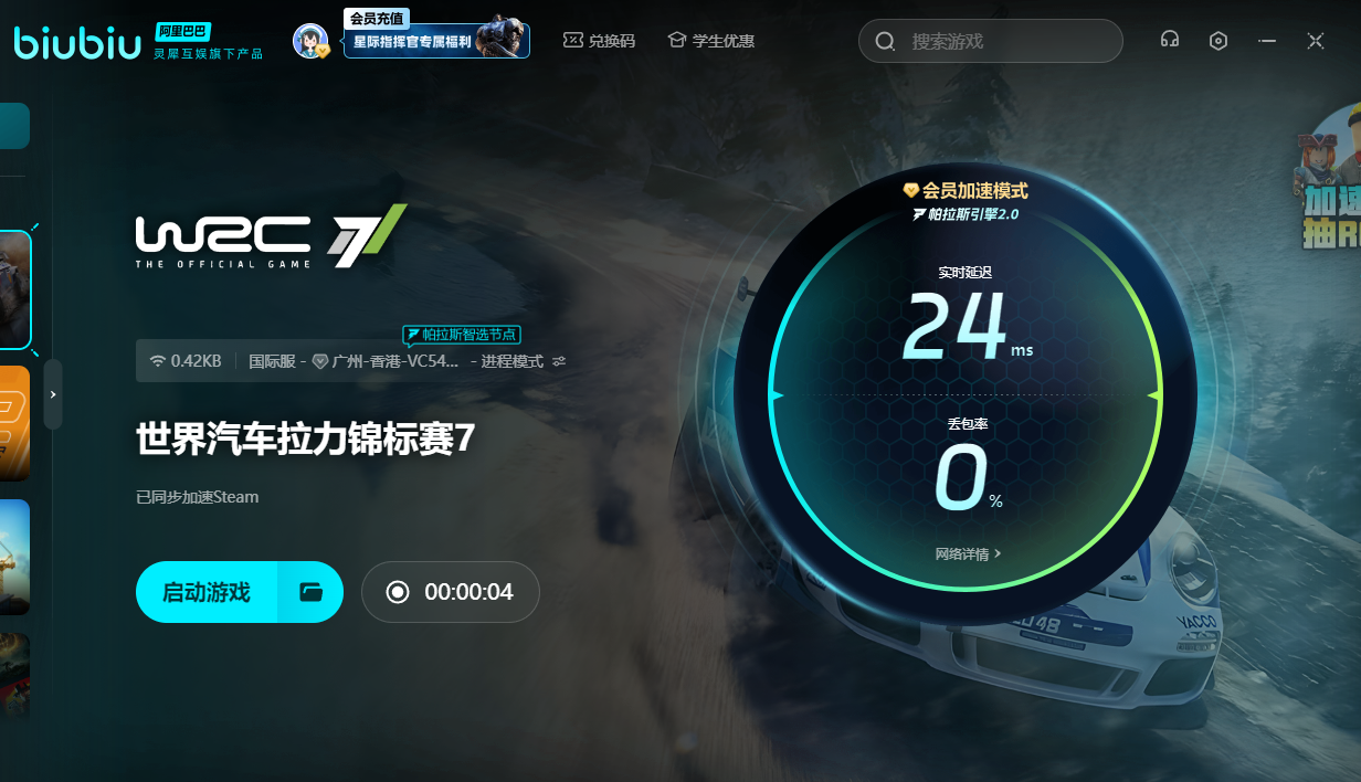 不过值得一谈的是wrc7作为国际大作,如今暂时没有上线国服。所以大家需要使用biubiu,才能优化本地网络,并获得成为拉力锦标赛一员的资格。新用户的话可获得3小时的免费加速,然后新老用户通过【biubiu不卡顿】,就能额外获得三天免费加速。若是在比赛途中太卡的话,那么就很有可能被周围的沙尘暴给淹没。用上了加速器后,就可以无惧这种恶劣环境,依然奋然前行。