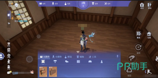 完成家具制作后,便可进入家园场景进行布局设计。界面下方提供大摆件与小摆件的分类操作,方便玩家自由摆放。大型家具如柜子、桌子适合沿墙放置,既整洁又能节省中心区域空间;小型装饰物则可置于桌面或柜顶,通过旋转功能调整角度,实现更自然和谐的视觉效果。除了静态布置,角色还可在家具旁执行打坐等互动动作,增强沉浸感。