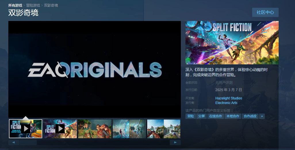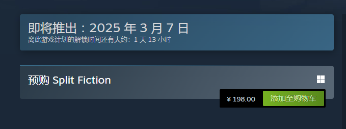 另外它也有英文名字的,大家用Split Fiction同样可以搜索到的。而且在3月7日它就上线了,现在赶紧去steam进行加购吧,等官方解锁的时候就能够正常的玩到了。