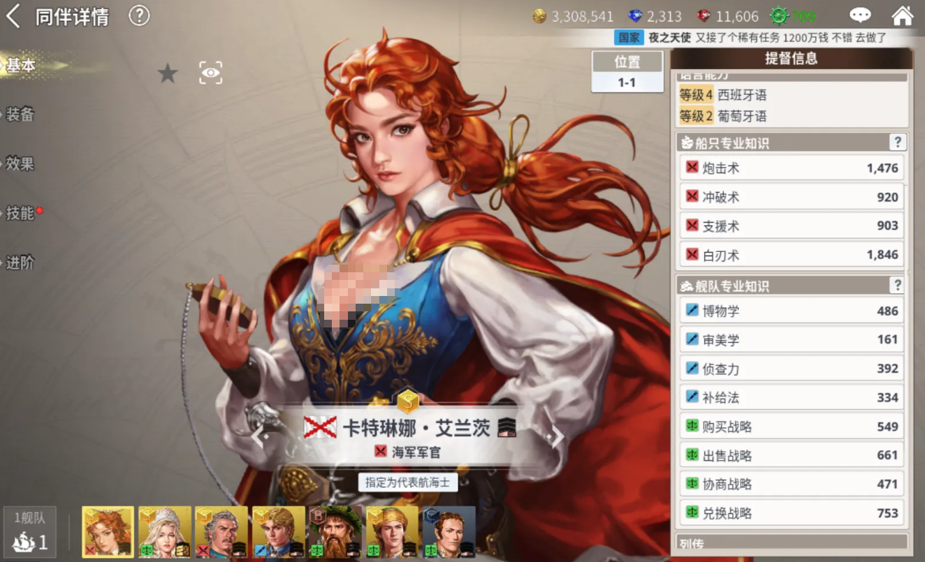 国服还设有针对性新手扶持机制:开服首发提督为约翰·费雷罗,完成基础教学流程(约15分钟)后,系统自动发放一张提督自选券。该券可于卡特琳娜、阿尔、埃内斯托、奥托四人中任选其一免费获得。上述四位提督亦支持蓝钻直购,单价均为5000蓝钻。另一重大调整在于取消传统抽卡机制,所有提督及航海士均开放多通道获取——包括商城直购、红钻兑换、旅馆招募及限时活动,其中旅馆招募池已涵盖原需付费解锁的航海士角色。