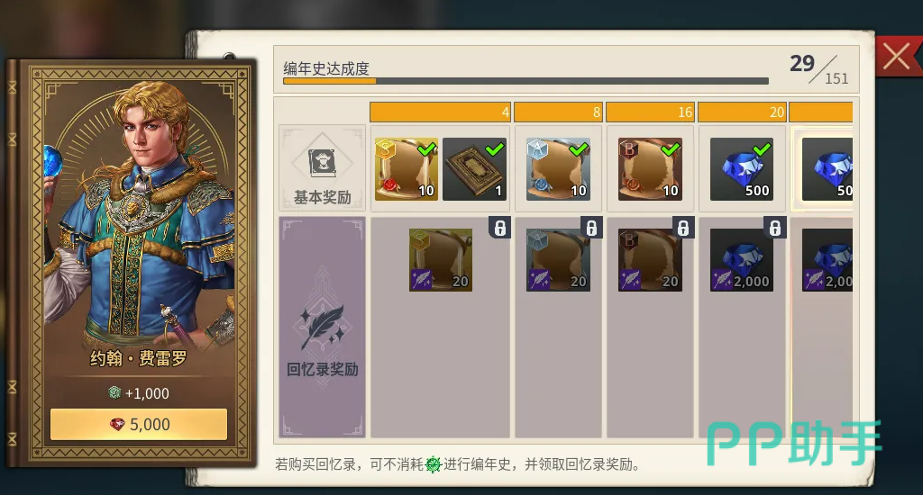 回忆录正是为解决上述痛点而设的增值服务。其定位类似剧情向通行证,在游戏商城中按提督独立上架。购买指定提督的回忆录后,该角色全部编年史章节将不再扣除行动力,实现无阻断式通关。此外,回忆录附带专属成就奖励体系:当编年史达成度达到预设节点(如30%、60%、100%),即可领取对应档位奖励,其中包含提督升级必需的稀有材料。这类材料日常产出渠道有限,而通过回忆录+编年史组合刷取,已成为稳定高效的养成资源获取路径。