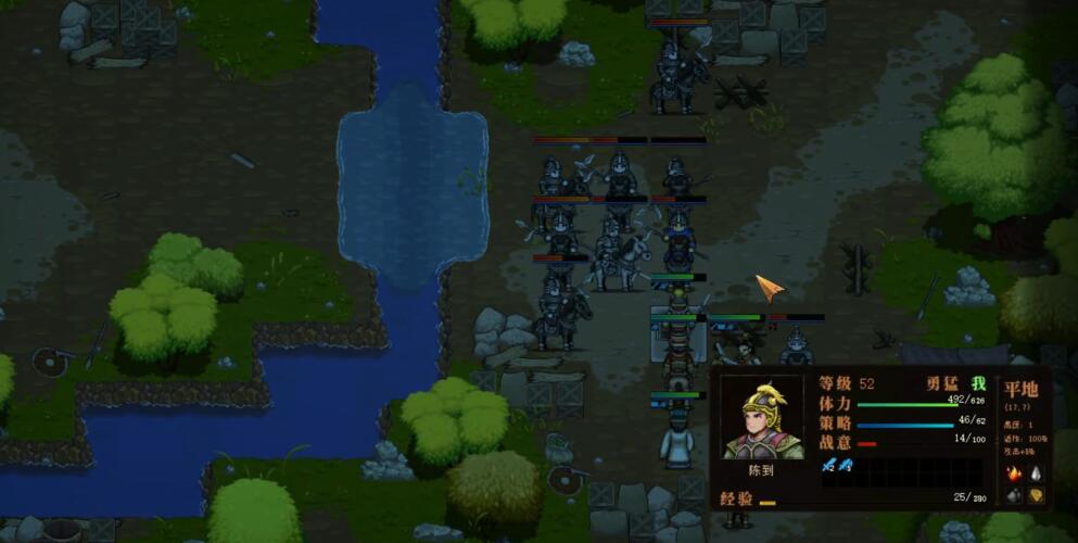 推荐阵容:张飞(主坦)+关羽(输出)+糜竺(治疗)+赵云(控场)+简雍(辅助)。张飞需装备玄铁铠(格挡率+25%)并卡住桥头利用“咆哮”技能降低敌军30%攻击力。赵云抢占西侧高地触发地形加成(命中率+15%)压制远程单位,河道区域可延缓骑兵冲锋,关羽在此释放技能实现群体溅射。