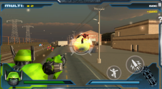 这款采用第三人称为大家所设置的射击游戏,它是以机器人展开枪战为主的,也是以3d的画面为主。置身于未来机器人的时代以后,有很多的邪恶机器人,想要摧毁城市这种情况下,绿色的机器人,必须要进行勇敢的反击,通过一系列的战斗以后,可成为最终的获胜者,更好的保卫城市。也有着简单的玩法,通过移动瞄准的方式,来维护和平。