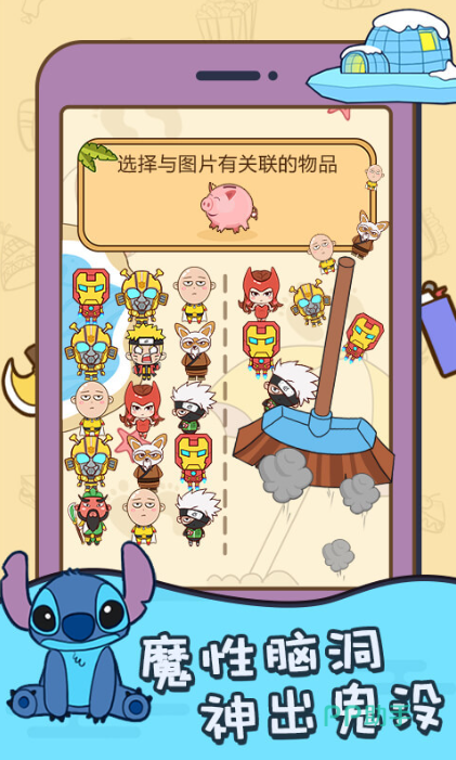 这款游戏的每个关卡都设有富有巧思的谜题,还不重样,才让大家拥有极为新奇的过关体验,而且游戏里的每个关卡不能用常理来思索破解,这就考验大家的脑洞与逆向思维能力。游戏里的角色通通都是大家所熟悉的动漫卡通形象,譬如星际宝贝中的史迪奇,才让大家倍感亲切和熟悉。游戏关卡多,才能让大家的IQ智商得到充分的锻炼和提升。