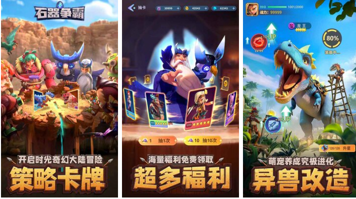 这款时间线设立于石器时代的策略卡牌作品也很优秀,精美卡通UI也能提供十分震撼的视觉感受,异兽改造和卡牌升级系统都增加了耐玩性,广袤的石器世界背景让大家活动范围扩大不少,远古巨兽随处可见可与你进行激烈战斗,真实石器时代的生活环境呈现也令人大开眼界,卡牌游戏粉丝在石器争霸的世界中战斗吧。