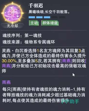 灵燕·白沉香是《斗罗大陆魂师对决》中一位机制独特、功能全面的辅助型魂师,凭借出色的增益能力和灵活的战术适配性,在多种战斗场景下均展现出强大的团队支持价值。本文将详细介绍灵燕白沉香的核心机制与实战应用,帮助玩家更好地理解这位魂师在阵容构建中的关键作用。