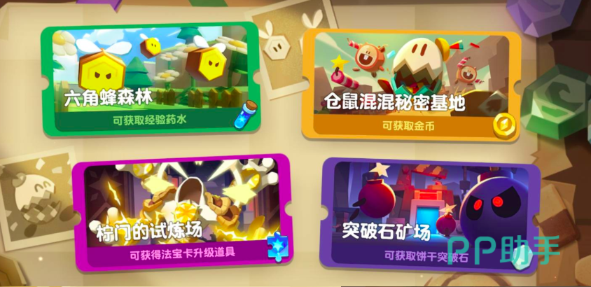 后期阶段(等级80+)需兼顾阵容强度与法宝体系构建,资源倾斜逻辑进一步明确:仓鼠混混秘密基地、柠门试炼场、六角蜂森林、香蕉族练武场按5:3:1:1比例分配。此时,仓鼠混混秘密基地持续保障金币供给,柠门试炼场成为法宝强化碎片的核心来源,而六角蜂森林与香蕉族练武场则分别承担基础成长与高阶饼干突破的辅助职能。