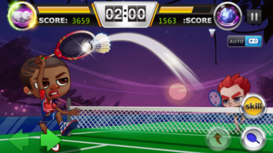 由于羽毛球本身就是两个人玩的对战游戏,所以介绍的这款同样也是非常不错的选择,人物采用的是卡通又独特的风格进行设计。置身于羽毛球场以后,你需要在规定时间内击败对手,尽可能的将对方打来的羽毛球接住,然后再打到对方的领域中,通过不断来回对战的方式,享受其中所带来的快乐,也融入了大家熟悉的体育运动。