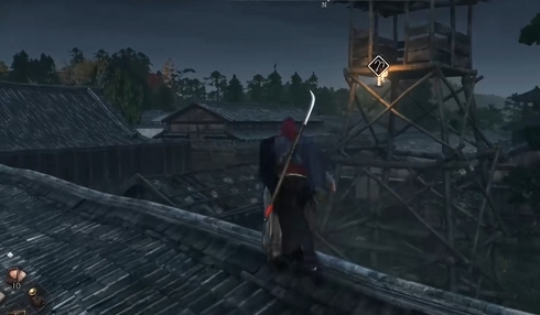 图中灰色的标志标注了两个宝箱的位置,小伙伴们直接去就可以收集到宝箱了,大家找到建筑物区域的宝箱时要注意的是,宝箱是在一个瞭望塔上的,需要通过旁边的屋顶跳上去才可以,靠近就可以看到宝箱的光芒了,上去直接交互就能拿到里面的东西。