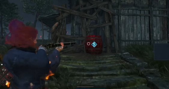 第二个宝箱的位置是靠近海边的,在这里小伙伴们可以找到野外的一个小院,院子有菜地,但是这里有敌人,小伙伴们需要把它歼灭,把敌人消灭之后,大家可以在一个小小的建筑门口看到一个红色的炸药桶,把炸药桶射炸清理障碍之后就可以进去打开第二个宝箱了。