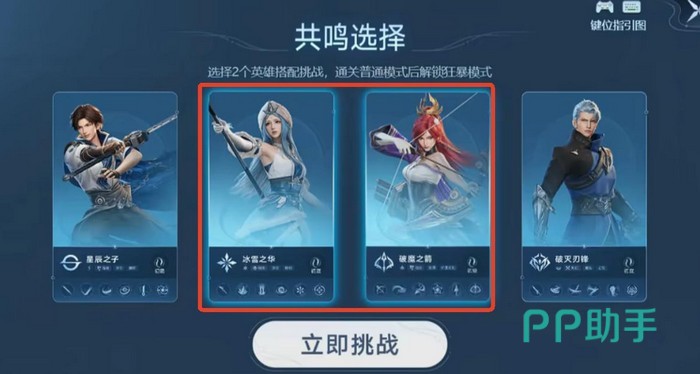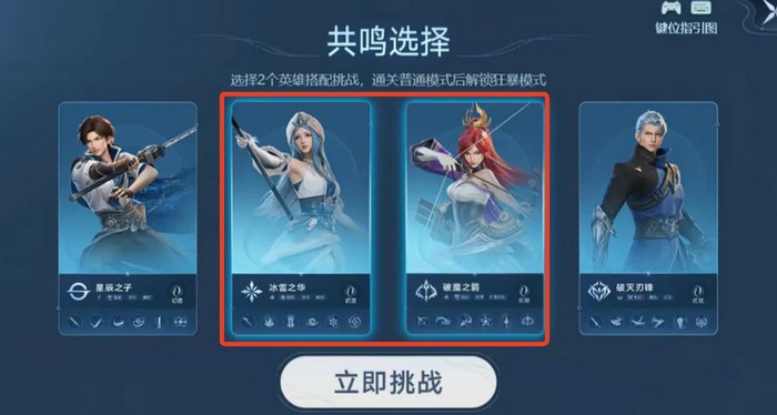 本次猩红神兽挑战共设两种难度模式:普攻模式与狂暴模式。推荐优先选择昭君与伽罗双角色组合应对。二者属性克制明显,配合机制成熟——昭君开局释放护盾后切换至伽罗,待护盾生效期间激活共流技能,大幅提升连携效率。该策略能确保伽罗在战斗初期快速进入强化箭状态,为后续输出奠定基础。