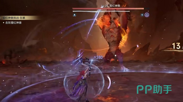 实战中需重点关注BOSS动作节奏:其红光预警阶段建议使用闪避衔接强化普攻进行破招;击晕后立即由昭君释放蓄力技触发昏厥击破效果。猩红神兽双臂为关键弱点区域,锁定该部位持续输出可显著提升伤害转化率。