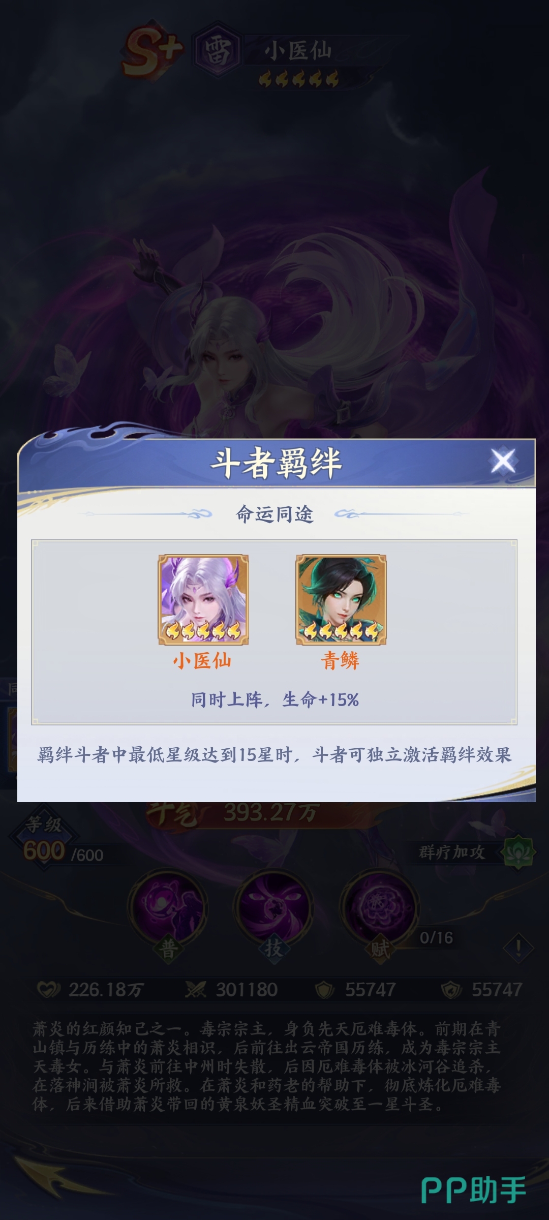 养成层面,优先提升小医仙等级以增强基础斗气值,直接关联其治疗量与攻击增益数值的成长幅度。天赋系统与赋魂模块应重点投入于“治疗效果提升”“攻击力加成”“技能冷却缩减”三条路径,确保其在多轮战斗中保持高频高质量支援能力。