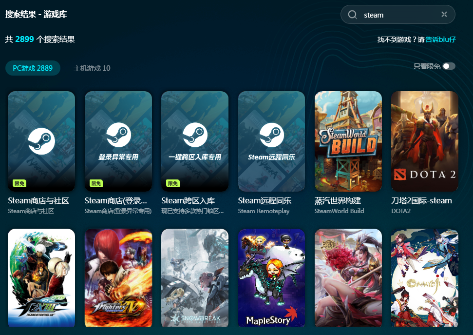 游戏玩腻了大家也可以在biubiu里面换换口味,平台里的资源特别多,想玩海外游戏或者是国服游戏都可以,而且平台还专门开设了一个限免游戏池,只要是池子里面的游戏都能免费加速,这就给大家节省了很多钱,不需要会员也能加速玩游戏,你就说biubiu有没有诚意吧。