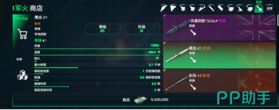 作为一款低伤害、冷却时间短的反舰导弹,YJ21的攻击力并不是特别突出。其最大射程较短,仅有10公里左右,相比其他同类型的导弹,YJ21的射程明显处于下风。然而,YJ21的冷却时间较短,约为4秒,这一点为其提供了一定的灵活性。