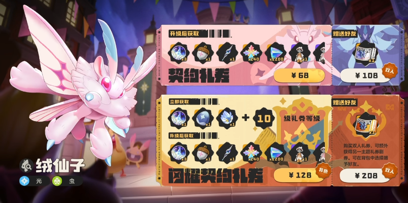 若希望优化前期成长曲线,建议选择轻度投入策略:重点配置月卡与赛季通行证。二者可稳定提供每日合成资源,保障基础精灵球的持续产出;同时,通行证奖励包含一只高资质初始精灵——绒仙子或光纤兽(二选一),二者完成进化后均具备主力输出定位,在推图、PVE挑战及竞技场中表现突出。