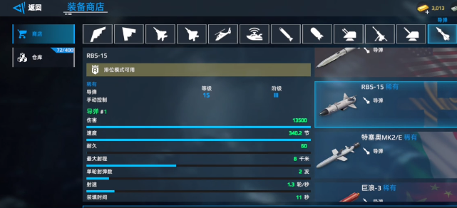 接着玩家也可以看一下来自于瑞典的rus15,这就是一个可以联装的导弹,在萌新时期就可以去使用,实用性还是很不错的。