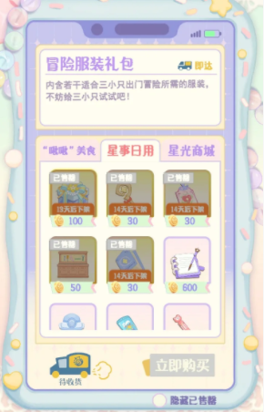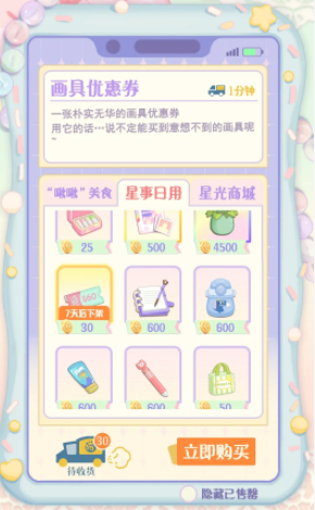 不管通过哪种方式,都能看到在商店里会有大量的食物和道具,比如角色非常喜欢的各类零食,另外还有一些比较基础的食材,玩家可以根据每个人的喜好购买相应的物品,点击立即购买,就可以根据提示支付相应的金额,支付完成之后,会有快递直接配送到玩家所在的住所,想要在游戏里购物是非常方便的。