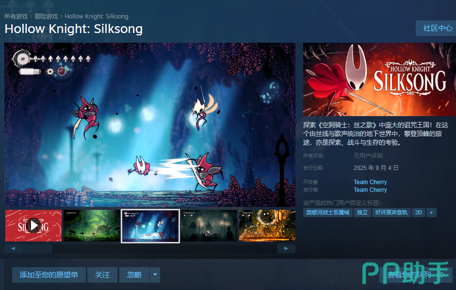 2025年8月21日,开发团队Team Cherry正式确认,《空洞骑士:丝之歌》将于2025年9月4日在PC及各大主机平台同步推出。游戏已全面支持简体中文界面、字幕与语音,目前Steam商店页面已开放,玩家可提前添加愿望单,以便第一时间掌握发售动态与后续更新信息。
