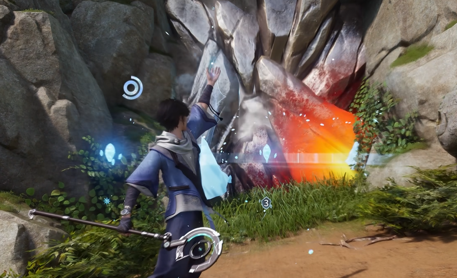 冰火机关专用于清除属性障碍物,常见于秘境入口及遗迹通道。障碍表面存在动态粒子特效:橙红跃动为火抗性障碍,需冰属性技能击破;幽蓝凝霜为冰抗性障碍,需火属性技能击破。附近岩壁常刻有对应属性图腾,地面残留元素结晶也可作为辅助验证依据。攻击需命中障碍物中心区域,单次有效命中即触发崩解动画。