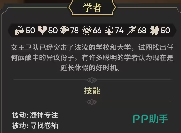 然而仅依赖属性数值并不足以应对复杂的战场环境。推荐首选学者角色,其自带“凝神专注”效果,并具备为队友提供恢复的能力,能显著提升技能命中率。第二位推荐猎人,该角色不仅基础数值出色,还配备一把可触发多重特效的弓箭,输出能力极为稳定。第三位则是吟游诗人,被动技能“振奋之音”可将所有判定转化为完美判定,是当前版本中最强大的辅助单位之一。