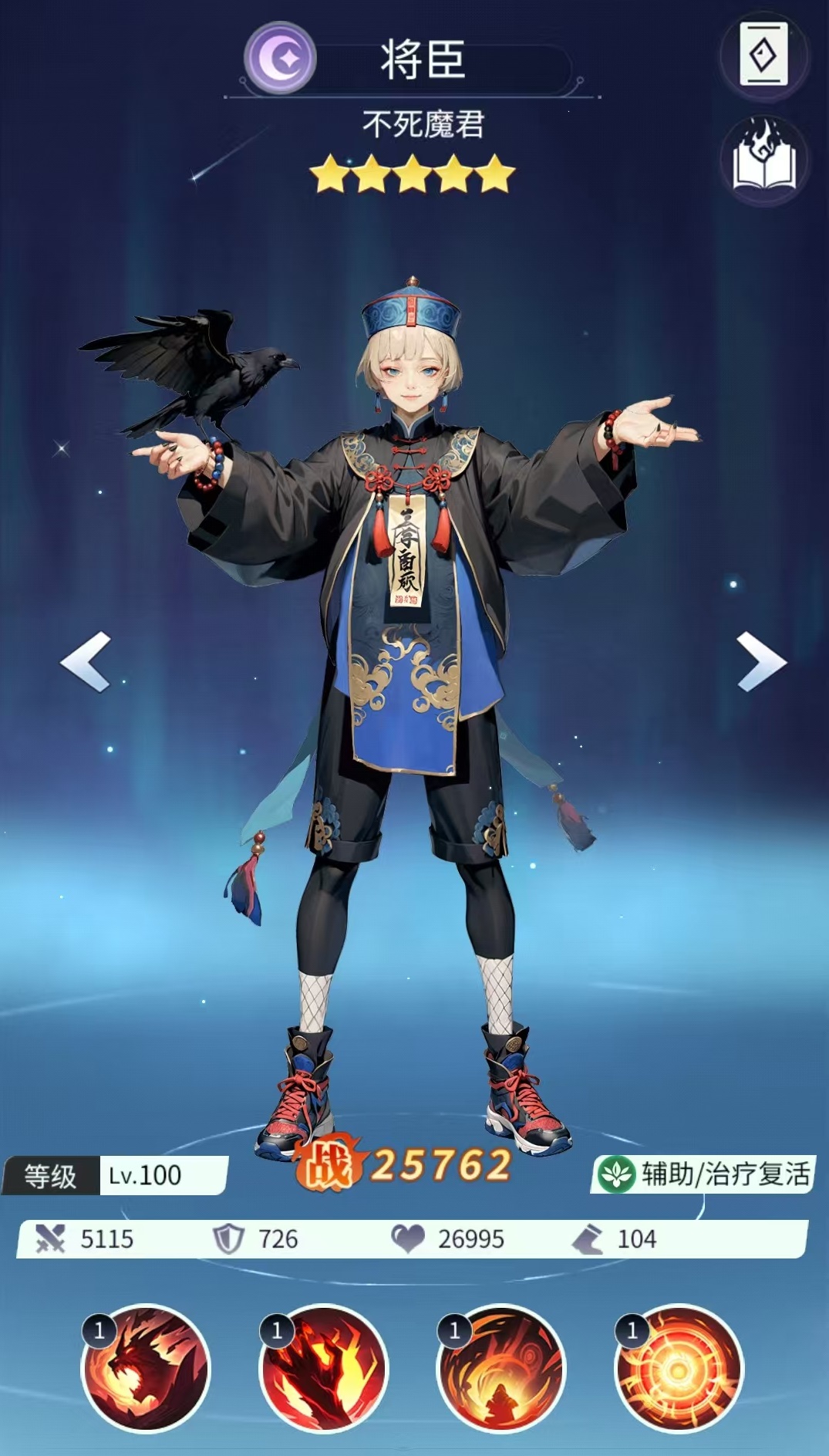 路西法作为前排战士,具备群体压制能力:可对敌方人数最多一排发动物理打击,并附加“疫病”“减疗”“防御降低”“流血”四重异常效果,与祝融形成状态覆盖互补。其天赋还赋予自身免疫魅惑控制,并在行动前概率为全队施加“鼓舞”增益,提升全体攻击力与命中率,兼顾单点输出与团队协同价值。