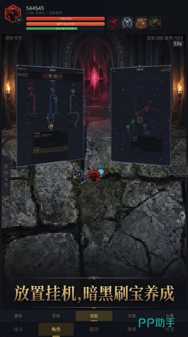 区别于传统高强度操作类ARPG,《放置暗黑》强调策略前置与过程自动化:战斗、资源采集、关卡推进均可全自动运行;离线状态下仍可持续积累金币、装备与经验。玩家只需在关键节点优化阵容结构、调整技能释放逻辑与天赋路径,即可实现高效成长。