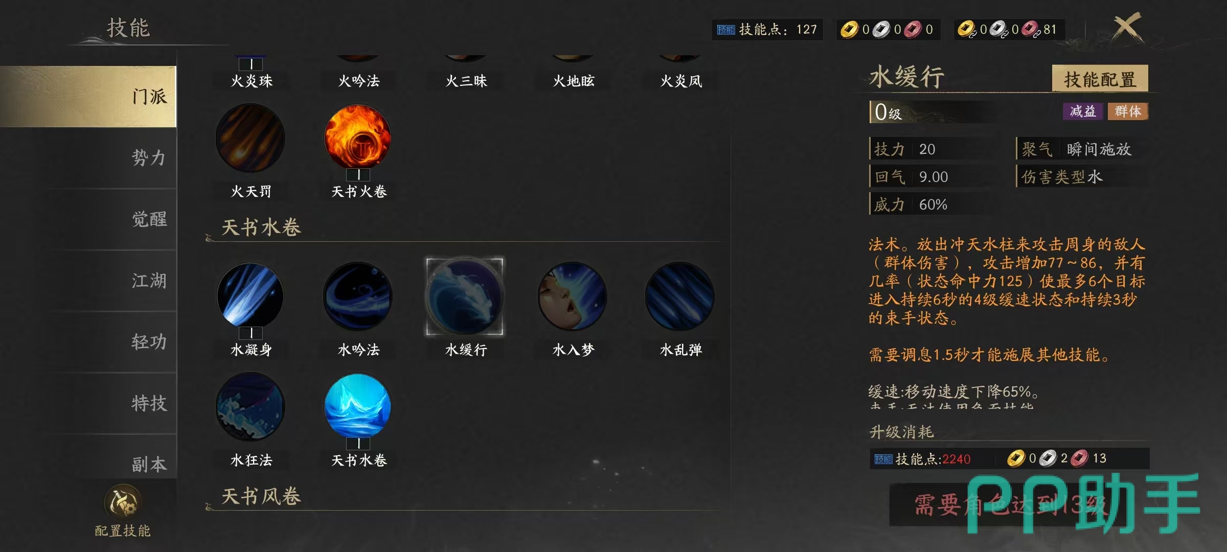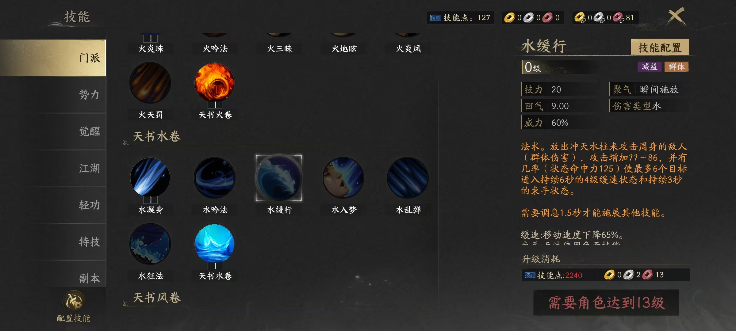 云麓是游戏中唯一专注远程施法的纯法系门派,技能体系严格围绕火、水、风三系元素构建,无近战或位移类技能,全程保持安全输出距离。火系侧重瞬时爆发,单体与小范围清怪效率突出,是副本攻坚阶段的核心伤害来源;水系以持续性负面状态为核心,可叠加迟缓、减速等效果,在PVP对抗中显著压缩对手机动空间;风系则聚焦大范围群体控制,具备打断、禁锢、区域封锁等多重控场能力,适用于团战节奏主导与战场分割场景。