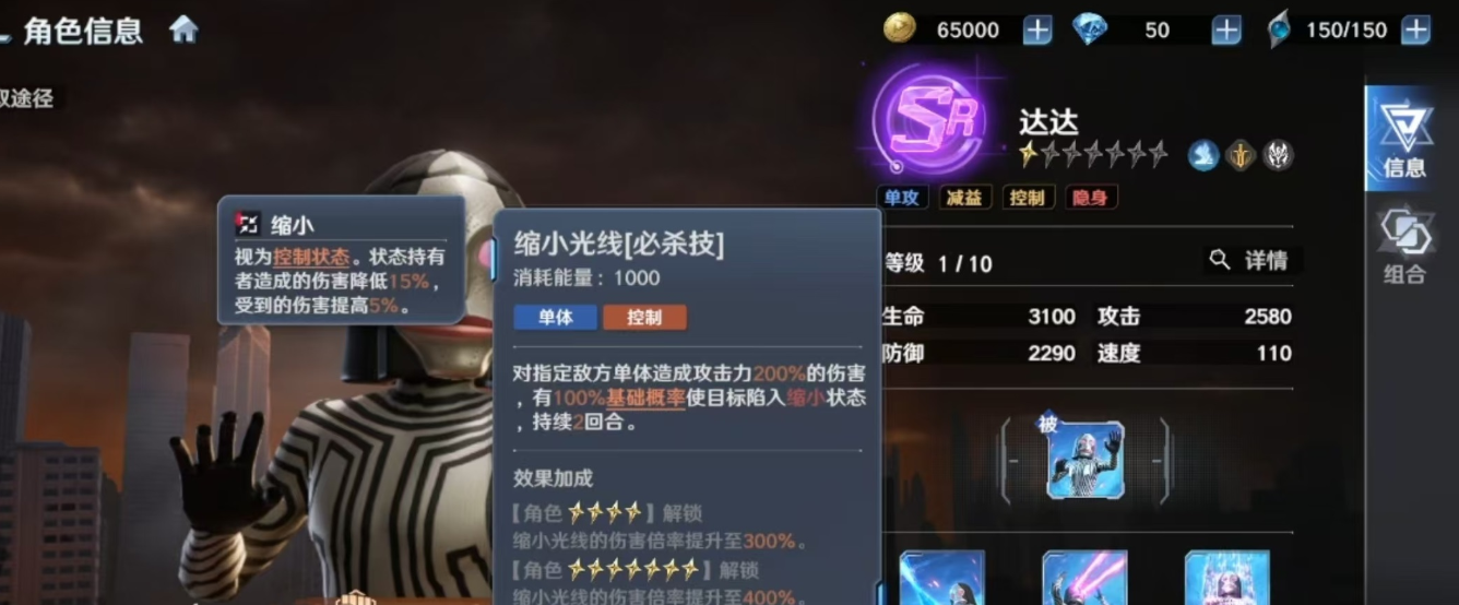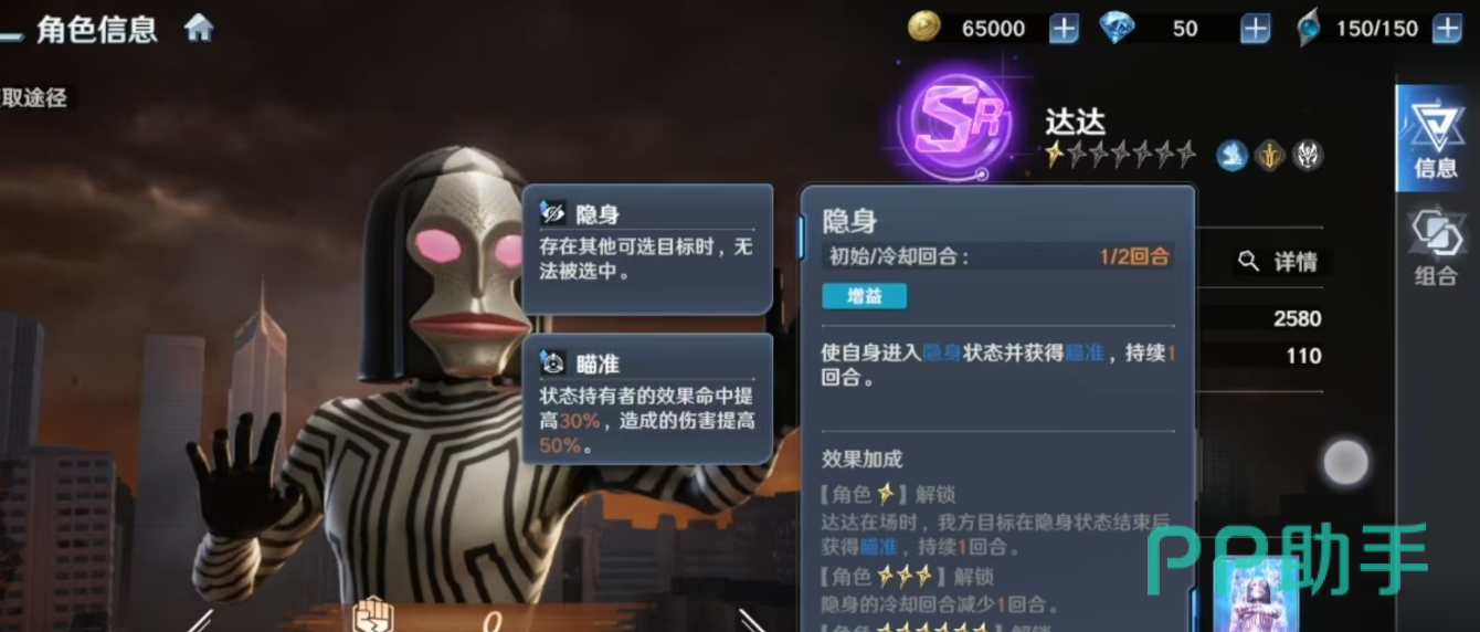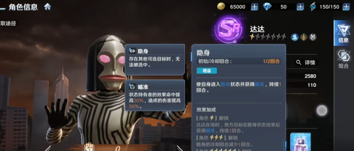 实战数据显示,达达具备极强的单体目标锁定能力。作为SR品质角色,其群体清场效能有限,但通过眼部光线技能配合高星级加成所触发的眩晕效果,在当前游戏底层判定规则下仍保有较高打断优先级。尤为关键的是,隐身技能生效期间,角色自动进入不可选中状态,并同步完成瞄准能量积攒。这种以生存容错为前提、以爆发衔接为落点的设计逻辑,要求玩家必须精准把握隐身结束后的反击时机,实现攻防转换的无缝衔接。