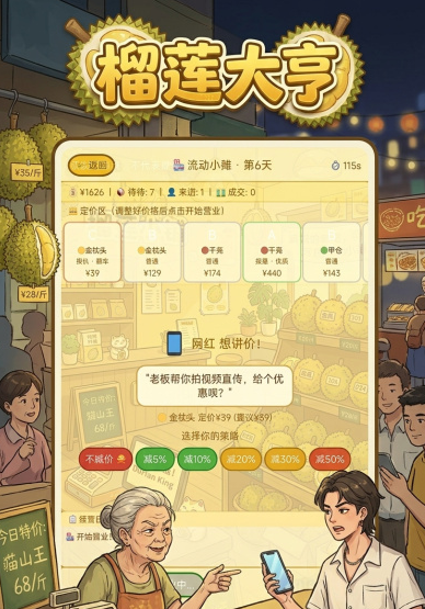 《榴莲大亨》手游怎么玩?本质是一场节奏可控的成长型经营体验:没有强制任务链,不设复杂成就体系,依靠开盒的随机性带来持续新鲜感,叠加定价策略与库存管理带来的轻策略深度,形成正向反馈循环。成长路径宜循序渐进,先吃透进货逻辑,再打磨定价技巧,最终实现从路边摊到榴莲连锁品牌的跃迁。