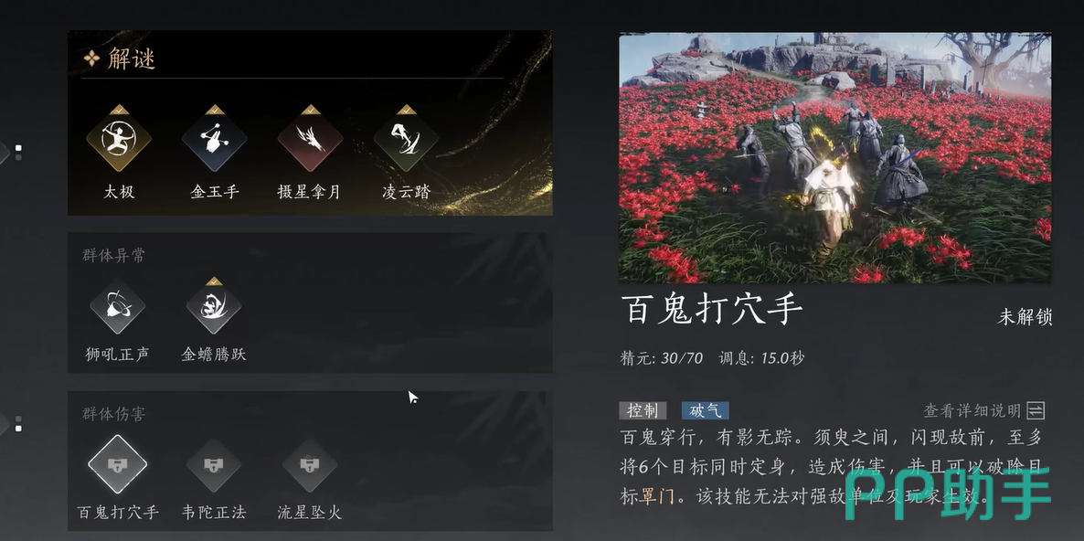 以上就是燕云十六声百鬼打穴手介绍的内容了。百鬼打穴手是一项集位移、控制和破防于一身的强力奇术,尤其适合快速切入战场和打乱敌人节奏。不过,它的威力取决于时机的把握和技能搭配的合理性。学会善用这项奇术,才能在燕云十六声的江湖中笑傲群雄。