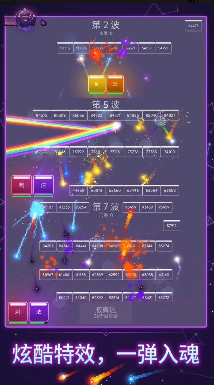 本作延续传统弹珠打砖块的核心逻辑,操作直观易上手:玩家无需手动瞄准发射,系统将自动形成弹幕式攻击节奏;弹珠撞击各类方块时,触发细腻的视觉反馈与动态特效。关卡采用波次制推进结构,每关包含若干波次挑战,不同波次中会随机配置差异化方块组合与阶段性目标,考验策略选择与节奏把控能力。