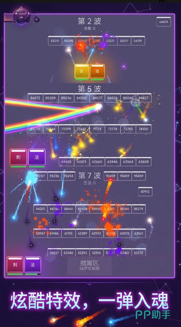 游戏引入两项特色机制:其一是角色与弹珠的自由搭配系统,玩家可根据偏好自定义外观与属性倾向;其二是“进退抉择”机制——在单波挑战结束后,可自主选择继续攻坚以获取更高倍率奖励,或稳妥撤离保留已结算收益,避免因过度贪图高分导致全盘归零。此外,角色与弹珠均支持持续养成,随游戏进程逐步强化基础属性与特殊技能。