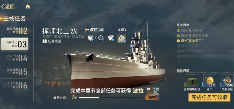 此外,游戏亦提供多条获取完整战舰的直接路径:其一为推进主线剧情,每通关一个章节章节节点,系统将发放一艘限定战舰作为通关奖励;其二为参与PVP竞技场,当玩家达到黄金、铂金、钻石等指定段位后,将解锁对应段位奖励战舰。此类战舰虽无需碎片合成,但获取条件具有阶段性与竞争性,适合作为中期战力补充手段。