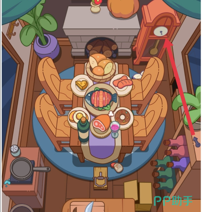 然后就是第五关了,盐下面会有一个柜子,玩家需要将其点击一下,然后找到火柴并点燃蜡烛,这个时候拿起剪刀剪断钥匙绳,玩家就会获得一把钥匙,用其打开一个盒子,最后将椅子旁边的种子拖到花盆里并浇水,在第六关中,大家首先使用地面上的开罐器来打开猫粮罐头,接下来点击左侧的柜子,里面会有一把锤子,用锤子敲打存钱罐便能获取到金币,最后大家将紫色的酱料和糖果颗粒涂抹在甜甜圈上就完成了。