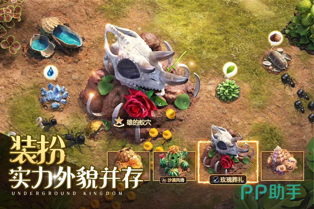 以真实生态为蓝本,在微观世界中构建庞大的蚂蚁文明。从一座蚁穴起步,玩家需要规划巢穴结构,调配工蚁采集资源,扩建领地,让蚁群逐步壮大。战斗体系围绕蚂蚁种群的进化展开,特化蚁拥有独特技能,能够在激烈的领地争夺中扭转局势。广袤密林地图揭示了隐藏的生态秘境,野怪势力盘踞其中,等待强者挑战。