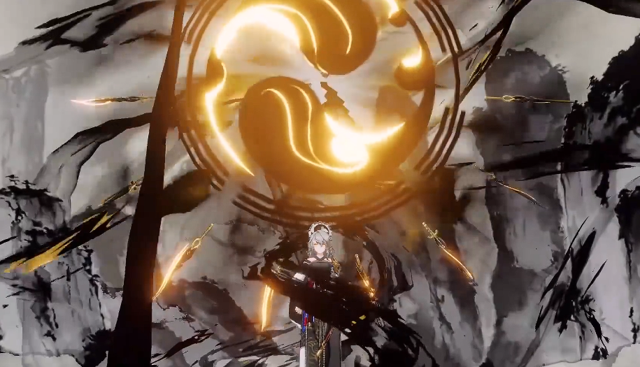 【万重奔流】为短距突进+范围协同技。韩羽向最近敌人发起突袭,造成200%伤害;若成功返回起始位置,且其3.5米范围内存在≥3名敌方单位,则立即获得8秒30%回避率提升。该增益显著增强她在群战中的生存弹性,尤其适配频繁走位与闪避反击的战斗节奏。