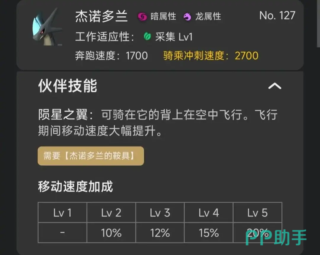 杰诺多兰在基础移动性能上略逊于空涡龙,但通过伙伴技能加成后,满星状态下的冲刺表现可与之持平。其核心优势在于耐力值达300点,为空涡龙的三倍,大幅延长空中滞留时间。尽管该帕鲁解锁进度偏后,但长期使用中展现出更高的任务容错率与跨区域调度能力。
