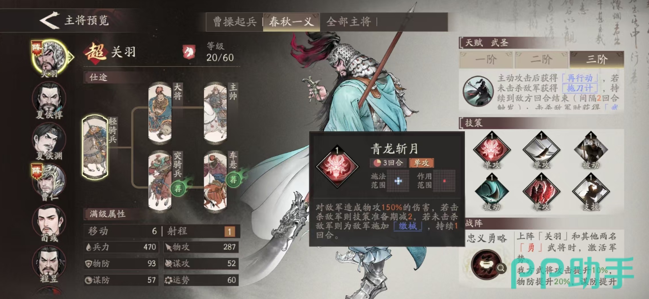关羽在战斗中常通过技能实现多次行动,但这也导致身上的增益状态容易提前结束。而周仓的天赋恰好能延长这些增益的持续时间,从而最大化输出窗口。同时,在连续击杀敌人时,周仓还能进一步强化关羽的爆发力,形成良性循环。加之周仓本身副将品质较高,所提供的属性加成也十分可观。