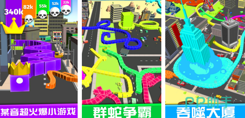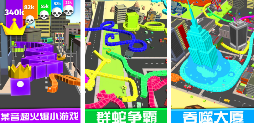 上线后已经拥有了超高的下载量,将贪吃蛇以及黑洞大作战的经典要素,您将会化身成为一条小蛇,将会沉浸在诺大的高楼大厦城市当中。通过吞噬高楼大厦的方式让自己变得越来越大,特别华丽的画面也给玩家带来了极强的视觉冲击力。此游戏的玩法特别简单,利用手指就能够控制其中的蛇合理走位。