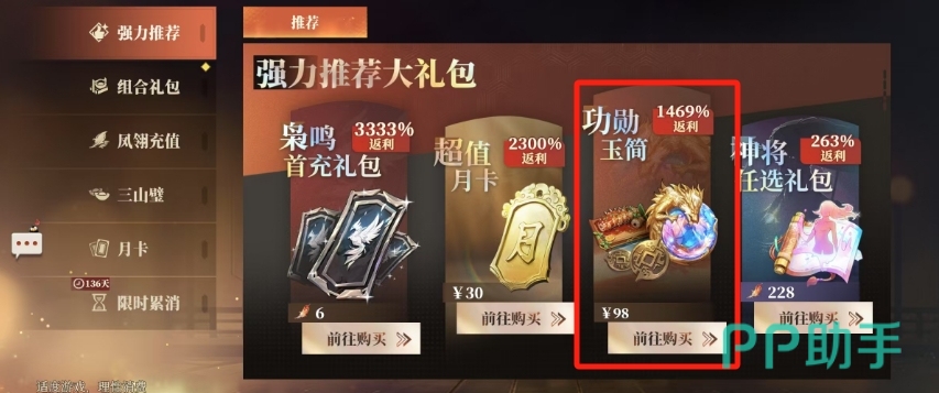 此外游戏中还推出了包含丰富奖励的各类礼包,其中功勋玉简便是比较受玩家关注的一个,这个礼包不仅在价格设定上十分合理,也充分考虑了不同玩家的消费能力,以98元档的功勋玉简为例,里面除了直接提供了价值980的三山壁以及1个珍贵的枭山魂珠之外,还贴心地附赠了一些其他的实用道具,比如额外的抽卡机会以及恢复资源等。