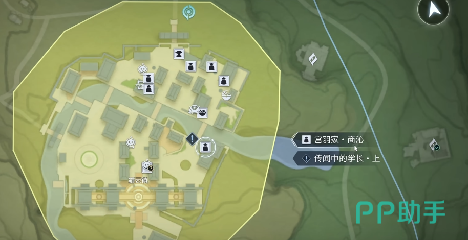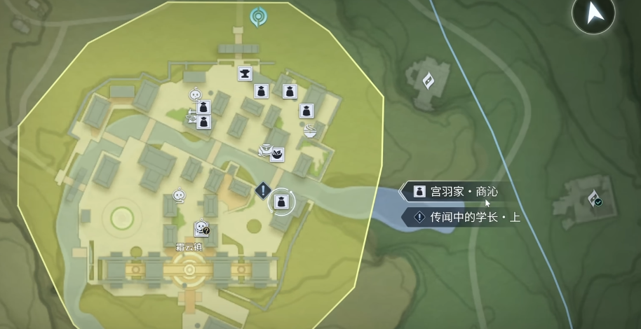 第二位NPC位于霜云镇,名称为宫羽家·商沁。建议开启地图追踪功能并快速传送至其所在位置——桥下民居内。完成对话后,可领取聂徽签名信。