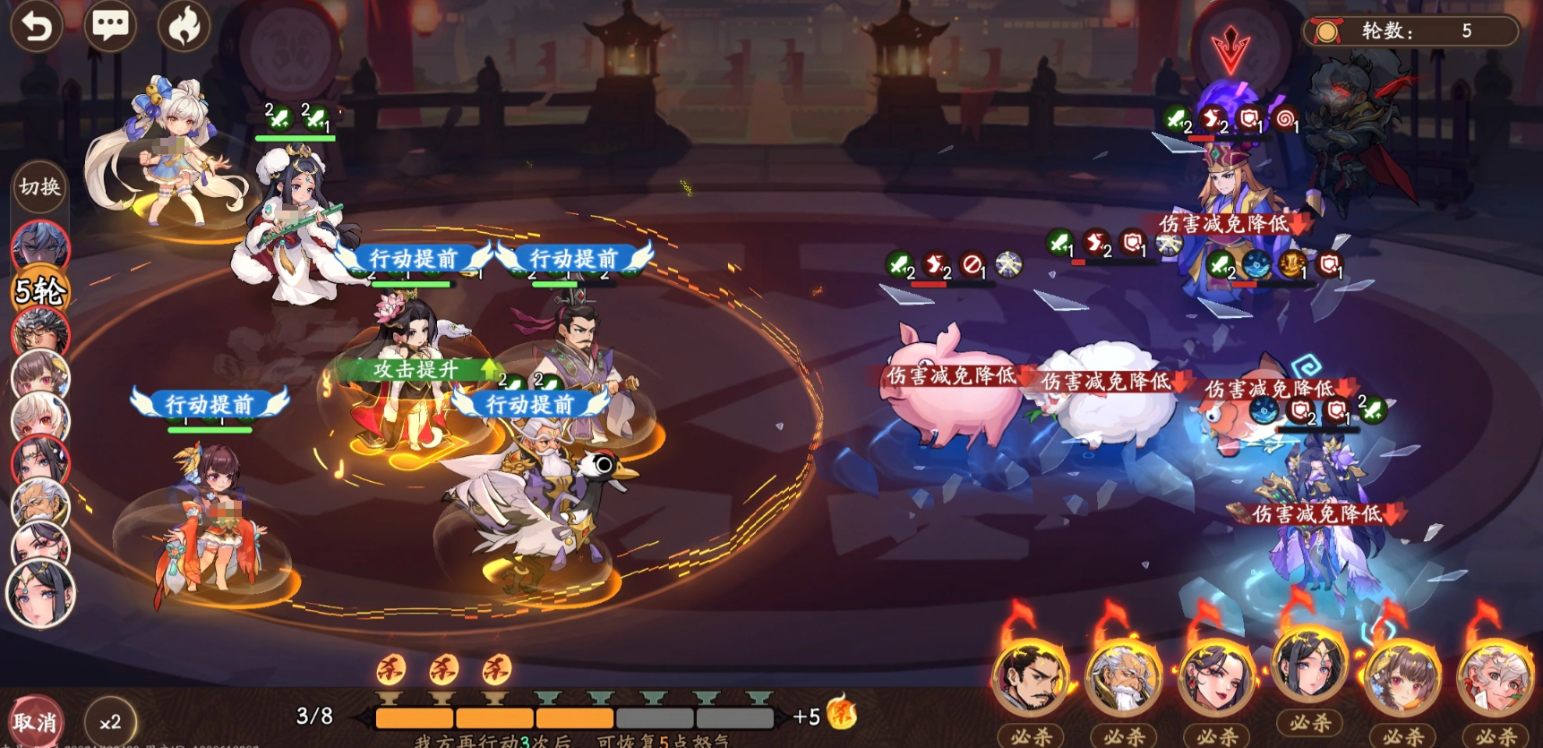 进入第2–3回合后,队伍完成首轮技能循环,何太后与左慈的控制概率因多重增益叠加而显著提升。此时通过重复触发蔡文姬、陈宫等角色的拉条效果,可实现2次以上技能重置,彻底锁死敌方关键武将的行动节奏。若蔡文姬自身配备行动次数加成类装备或天赋,其技能释放频次将进一步提高,既可支撑团队循环,亦可在后期承担单点爆发任务。该体系在主线推进与高难度副本攻坚中均表现出色。