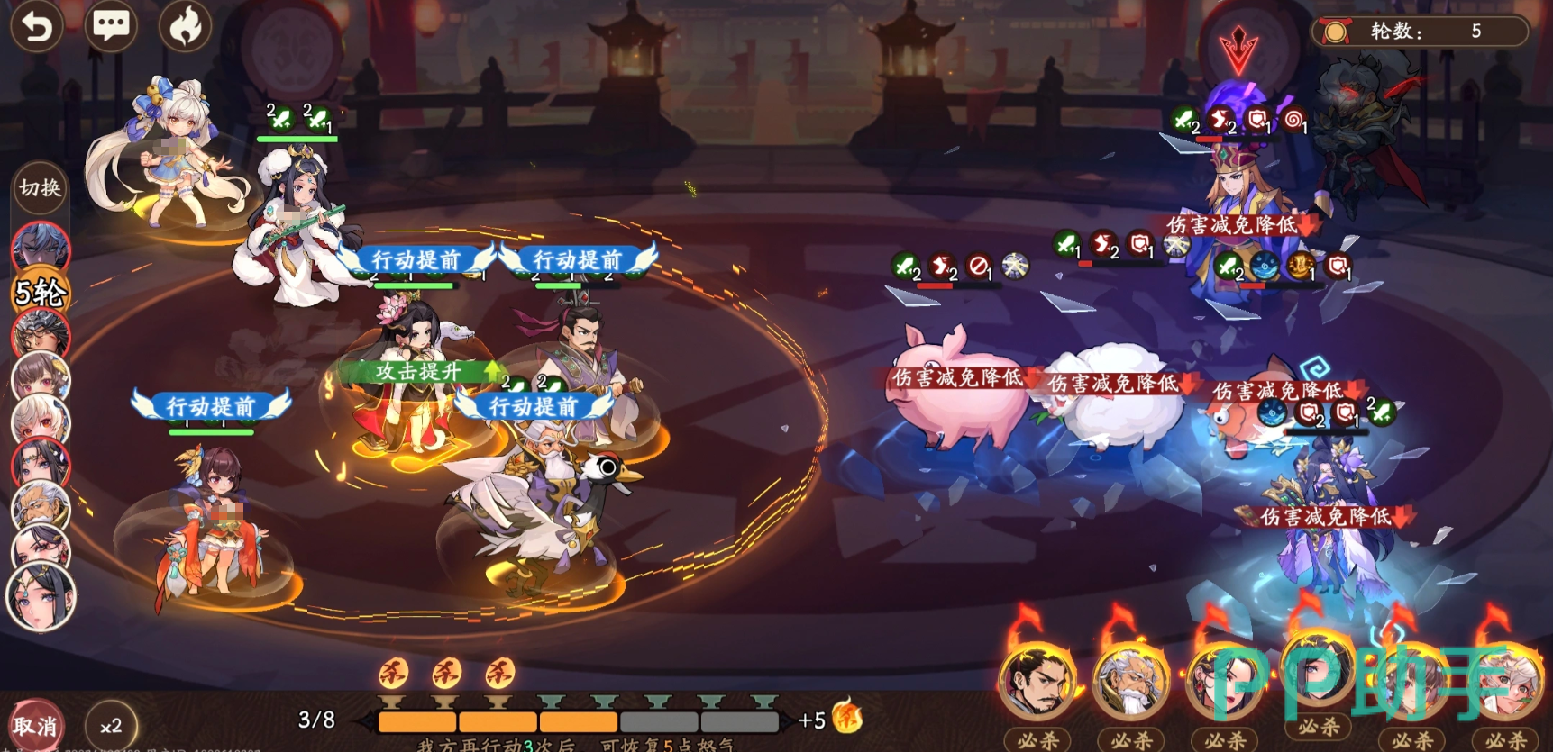 典型配置中,蔡文姬与陈宫形成双30%行动提前叠加,配合何太后补足控制链。左慈作为第四位核心,可通过技能复制场上已存在的增益或减益效果,当前复制成功率为30%;若前置天赋选择左侧强化路径,则基础控制命中率可提升至50%,并维持2回合持续时间。该组合确保前中期控场稳定性,为后续多段拉条创造安全环境。